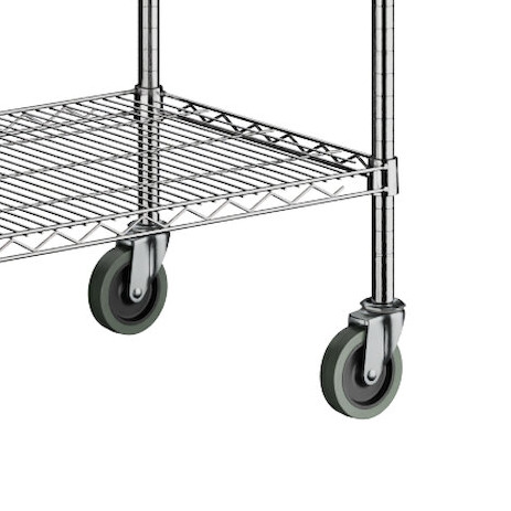 The 4" poly casters allow your shelving unit to easily move for convenience when cleaning and reorganizing your kitchen storage setup! Designed for cleaning and reorganizing purposes, these casters are not meant for moving your storage unit between spaces. Two of the casters feature brakes to hold the unit in place when necessary and can be attached after removing the feet from the posts.