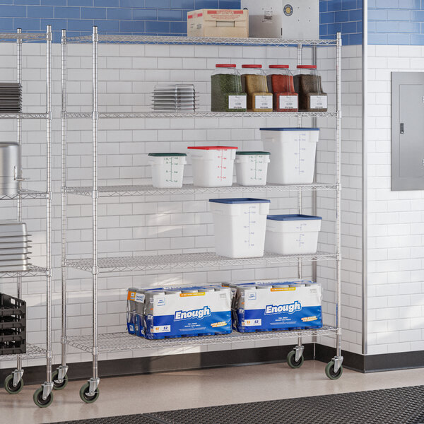 Keep your storage area organized with the commercial-grade Steelton 18" x 24" NSF chrome 5-shelf kit with 72" posts and casters!