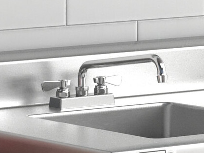 A faucet (sold separately) can easily be attached to your sink on the 1" diameter holes punched on 4" centers.