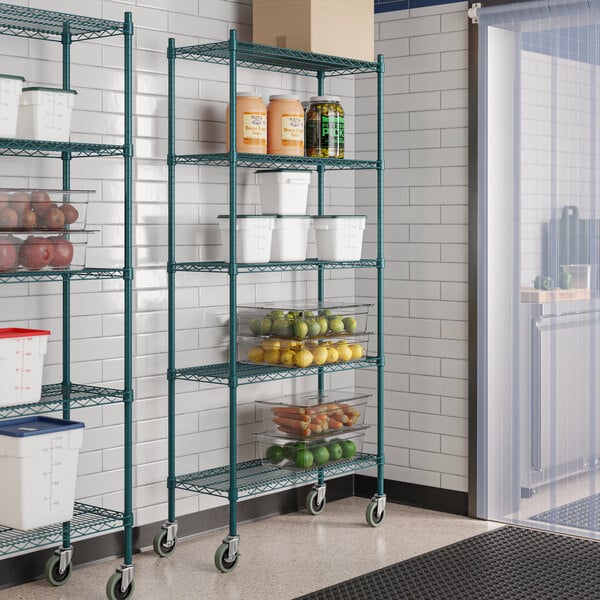 Steelton 465G1436K75C 14" x 36" NSF Green Epoxy 5-Shelf Kit with 72" Posts and Casters