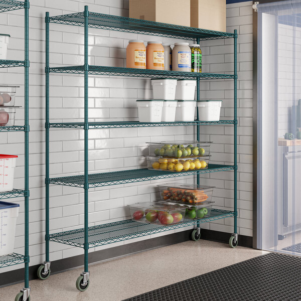 Steelton 465G1872K75C 18" x 72" NSF Green Epoxy 5-Shelf Kit with 72" Posts and Casters