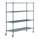Steelton 465G2472K74C 24" x 72" NSF Green Epoxy 4-Shelf Kit with 72" Posts and Casters