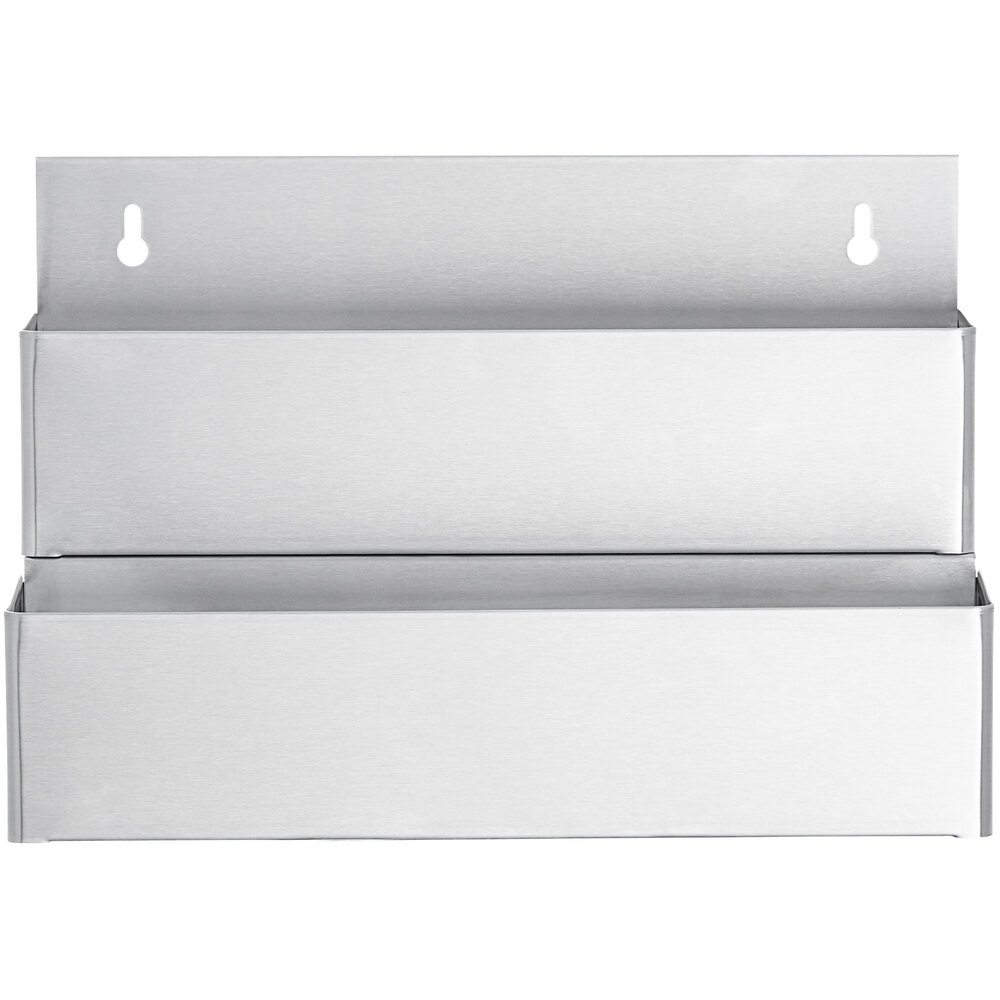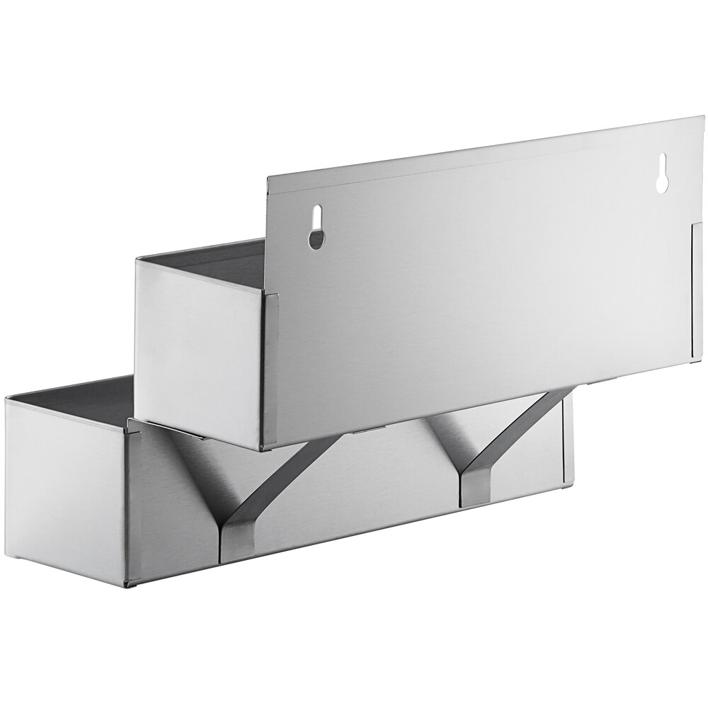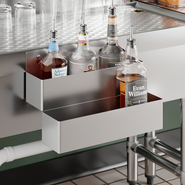 The Steelton 15” stainless steel double tier speed rail is perfect for storing your most popular liquor bottles behind your bar. By attaching this product to your wall, underbar cooler, or bar counter, your bartenders will be able to more quickly access the bottles and fill orders. This also allows you to keep your bottles organized, further increasing efficiency.