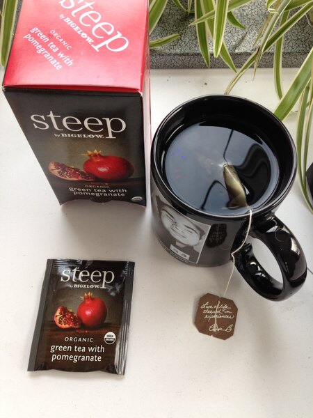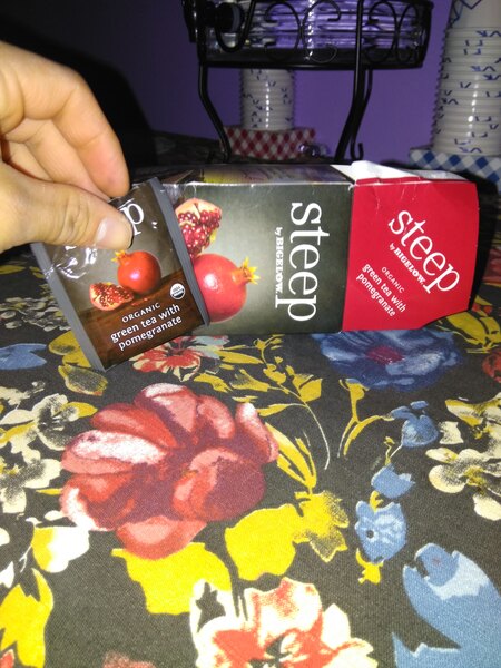 Steep by Bigelow organic green tea with pomegranate is so convenient and affordable for organic tea. It has a great flavor, and all packaging is biodegradable! Cool!