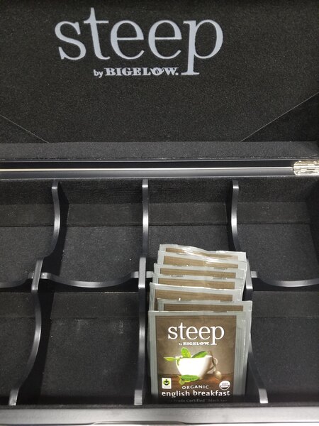 Bigelow is a great brand, and their Steep tea is nice to have around because it's nice and cheap, but tastes just as good as any other tea. English Breakfast is no exception!