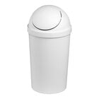 Maximize efficiency and keep your space clean with the Sterilite 3 gallon white round wastebasket with lid. The swing-top lid swings open and closed easily with one hand, providing convenient access and maintaining a tidy environment. Its construction is BPA- and phthalate-free, ensuring a safe and environmentally friendly waste disposal solution.