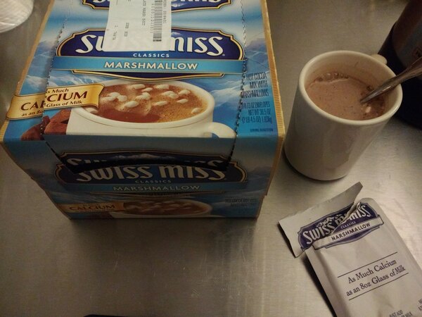 We order Swiss Miss primarily for one of our autistic, adult employees. This is her favorite hot chocolate. The pouches are great because it keeps the powder fresh. Also, there's the perfect amount of powder in each pouch for a 8 oz cup.