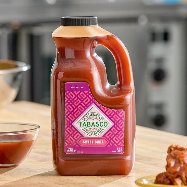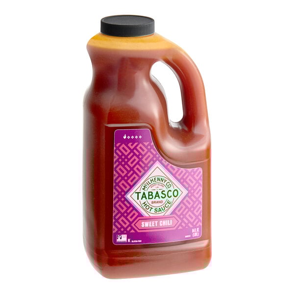 TABASCO® 64 oz. sweet chili hot sauce provides a quick and easy way to flavor your dishes! It combines ginger and other Asian flavors with TABASCO® hot pepper sauce. TABASCO® brand sweet chili hot sauce is a rich, thick blend of Asian-inspired sweetness and mild heat. Choose TABASCO® hot sauce for your restaurant or event, and your guests will recognize the brand name as one that stands for consistent quality and taste!