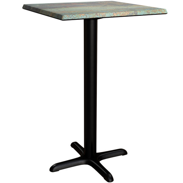Lancaster Table & Seating Excalibur 24" x 24" Square Counter Height Table with Textured Canyon Painted Faux Metal Finish and Cross Base Plate