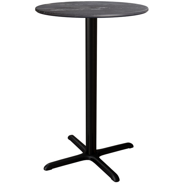 The included cross column table base elevates the table to bar height and ensures that the table stays steady and balanced while guests enjoy your signature drinks and dishes. Made of strong stamped steel with a sleek and resilient black e-coating, it's well equipped to weather the elements and resist corrosion. Blending into any environment to enhance your dining space, this table base and column are sure to provide reliable long-lasting use at both indoor and outdoor eateries. Plus, pre-drilled holes allow for the use of floor glides to protect your flooring from scuffs and scratches!