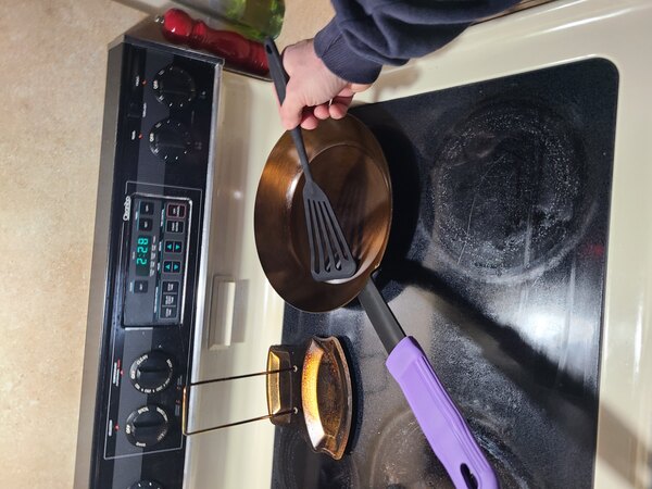 I've been looking for a silicone-coated steel spatula/turner for a really long time. Very sturdy but still safe on non-stick pans. Works great. I ordered a bunch of these in different shapes and sizes.