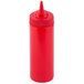 This TableCraft 11253K 12 oz. red wide mouth cone tip squeeze bottle is perfect for any busy kitchen or dining area. Its red color allows you to create a color-coded system in your kitchen for quick identification. Each bottle is constructed of leak-proof soft plastic, which gives it the perfect flex for faster prep. The cone tip opening allows for ample drizzle, or for a heavier pour, easily trim the tip to create a wider tip opening!