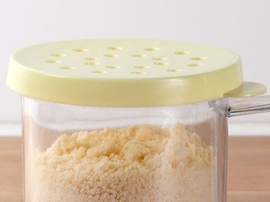 This tablecraft polycarbonate shaker with yellow lid is great for ground cheese and dry herbs too! The handle makes it easy to use. I highly recommend this item.