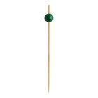 Elevate your food and beverage presentation with the Tablecraft 4 1/2" red ball bamboo food / cocktail pick! This eco-conscious pick is constructed from sustainable bamboo and pinewood, making it a stylish and environmentally friendly choice for your establishment. The decorative red ball topper adds a playful touch to your dishes and helps easily identify specific products, making it perfect for use in busy kitchens and bars. Ideal for use with burgers, sandwiches, cocktails, and appetizers, this pick is a versatile tool that can be used for garnishing and holding together your favorite drinks and snacks.