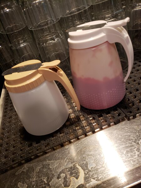This Dispenser works well with thicker sauces such as syrups and honey. but for less viscous sauces and juices, such as soy sauce, vinegar, or juice as described in the product description, it leaks all over and will be a mess. Because of the headache these leaks will cause because of the clean up you'll have to do at the customer's table, and where ever you store it. this product gets a zero until they fix it by adding a gasket or somehow making a better seal.