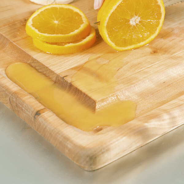 Great for cutting freshly-baked breads, chicken, ham, and much more, this versatile wooden cutting board is functional and stylish! To maintain the board's natural beauty, it should be hand washed and regularly treated with food-grade mineral oil. This northern hard birch wood board with a well will protect your countertops from cut marks and will provide the perfect backdrop for all of your culinary creations!