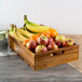 This durable wooden crate features a professional acacia coloring designed to blend into any establishment. It can hold a 4" deep standard size food pan. Get creative and flip the crate upside down to create a riser. The trendy, yet rustic appeal of this crate will impress guests at any establishment from fine dining restaurants to casual eateries. This crate features a built-in handle on either side for easier transportation. Use this crate with other pieces from TableCraft to create a dynamic presentation of your fresh fruits, vegetables, breads, and appetizers!