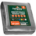 Keep important items protected with this Tarpco Safety 12' x 20' silver / black heavy-duty weatherproof 7 mil poly tarp with reinforced edges. This multi-purpose tarp serves as a protective cover for items such as building materials, vehicles, roofs, and outdoor furniture. It boasts metal grommets every 36" and it has reinforced edges, making it quick and easy to tie down. Thanks to the ultra-strong grommets, your tarp will remain securely in place even when it is windy.