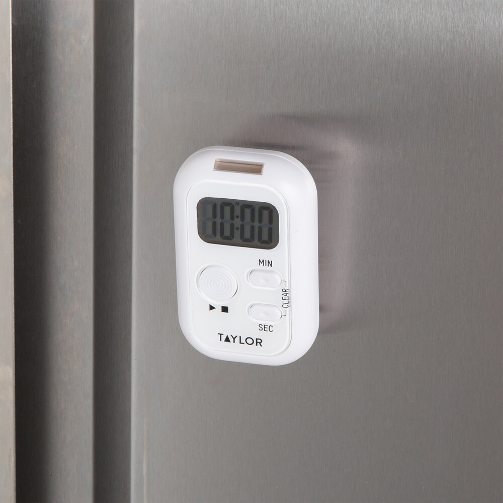 Ensure you never overcook or undercook your signature dishes again with this Taylor 5879 digital kitchen timer with a flashing light and vibration! Once it has finished counting, the timer alerts you to take your baked goods, tender meats, or sizzling side dishes out of the oven. This is perfect for busy kitchens where the noise level might keep you from hearing a timer with an audible alarm only.