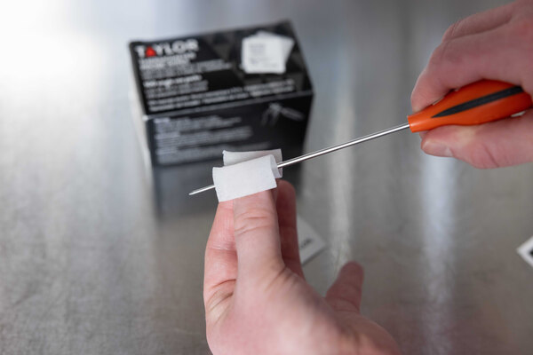 This Taylor 9999N anti-bacterial thermometer probe wipe helps eliminate cross-contamination and the spread of bacteria in your commercial kitchen. It is designed to clean and sanitize your thermometer probe and is quick and easy to use. For any thermometer with a probe, simply swab the metal section with a thermometer wipe, and you're done! It is a simple one-step process that ultimately prevents cross-contamination in even the busiest of kitchens.