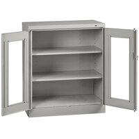 Equip your warehouse, office, or industrial space with this economical Tennsco 18" x 36" x 72" light gray standard storage cabinet with c-thru doors CVD1470-LGY. This cabinet boasts a durable carbon steel construction with a light gray powder-coated finish, ensuring longevity. The dual swing-out doors feature clear windows that provide excellent visibility, and they ride on heavy-duty hinges for a smooth performance. Reinforced panels in the doors provide further stability to prevent shaking and vibrating upon opening. For maximum security, this unit is also equipped with a three-point locking mechanism. Additionally, the base of the cabinet is raised, protecting the contents from potential harmful cleaning chemicals.