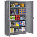 Equip your warehouse, office, or industrial space with this heavy-duty Tennsco 18" x 48" x 78" dark gray jumbo storage cabinet with solid doors J1878SU-MGY. This cabinet boasts a durable carbon steel construction with a dark gray powder-coated finish for superior durability and sturdiness. The 20-gauge dual swing-out doors ride on heavy-duty hinges for a smooth performance, while reinforced panels in the doors provide further stability to prevent shaking and vibrating upon opening. For maximum security, this unit is also equipped with a three-point locking mechanism. Additionally, the base of the cabinet is raised, protecting the contents from potential harmful cleaning chemicals.