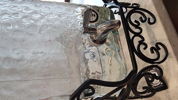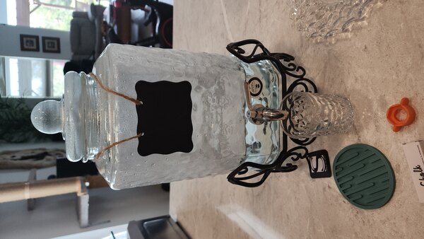 I bought this lovely hammered glass beverage dispenser for the upcoming holidays, wanting to find something that complimented my antique glassware. It was packaged very well in several solid chunks of styrofoam and arrived unharmed. The glass is moderately thick, not the heaviest weight I've ever seen, but not extremely lightweight either. The spout, which is metal, was attached on the inside, presumably so it didn't get broken off, and it was a quick process to reverse it, requiring no tools. The lid is glass as well, and is probably not the best fit, and will do well to have a little bit of clear silicone caulk applied to the underside of the lid so it doesnt clatter against the base if set down too hard. The knob on the lid is a little short----If I could give any feedback to the maker, it would be to give the Read More