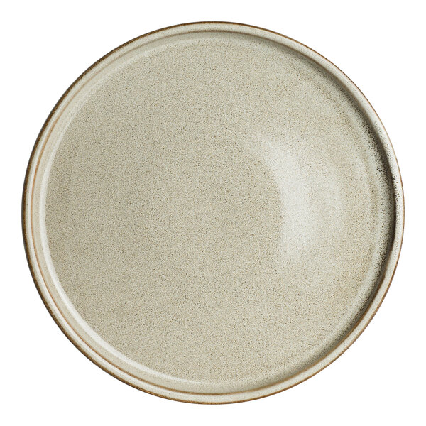 Create an unforgettable dining experience with The Potter's Collection by Robert Gordon from Steelite International 9" round pier porcelain stack plate! With a stunning embossed porcelain construction, this plate is not only stylish but also durable, ensuring reliable performance and visual appeal. Its eye-catching neutral taupe / pier color features a dark brown rim for a unique, organic look.