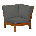 For an upscale, cozy sitting area that guests will love, choose this Three Birds Casual Monterey charcoal corner sectional chair. This chair is perfect for use paired with other Monterey sectional pieces (sold separately) to create a sectional for a cohesive sitting area. It features a stylish teak frame that is accented with water-resistant charcoal cushions. The two comfortable back pillows make this corner chair the perfect place to sit back and relax. The thick, luxurious teak wood makes this corner chair perfect for use at your country club, outdoor restaurant, or resort.