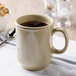 Discounted shipping withServe your hot beverages in style with this Thunder Group ML901S 8 oz. nustone sand bulbous mug. Coming in a speckled nustone sand color, this bulbous mug will present all your beverage offerings in style. Reminiscent of a hidden away diner that time has forgotten, the color and design of this bulbous mug adds a vintage appeal to any establishment. Its rounded shape with handle is perfect for serving hot cocoa, coffee, or tea.
