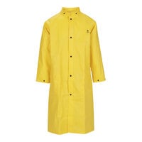 Protect yourself in hazardous work environments with these Tingley DuraScrim yellow overalls. Constructed with an open weave polyester scrim fabric that is double-coated in PVC, these overalls are designed to withstand tough conditions. They feature Therm-O-Rad sealed seams that are 100% waterproof and mildew-resistant, and the sealed seams also protect against chemical splashes from many acids, oils, alcohols, and salts. The lighter interior coating protects the fabric from chemical contamination, while the exterior coating is abrasion-resistant and provides protection against viruses. Additionally, these overalls are flame-resistant and self-extinguishing.