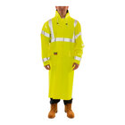 Ensure protection from hazards with this Tingley Eclipse high-visibility yellow coat. This durable, light weight coat is made with non-woven Nomex® meta-aramid material with a PVC coating for a soft, light weight fit for all-day use. Designed with Tri-Hazard protection, this coat offers protection against liquids, arc flashes, and flash fires. The PVC coating is flame- and chemical-resistant and the Thermo-Grid technology helps block out heat energy. The waterproof fabric is fluorescent yellow for excellent daytime visibility and features 2" silver tape that reflects light for 360-degree nighttime visibility. It's also made with a fully vented cape back for air circulation and is ideal for use in all seasons. This coat has been tested to ANSI/ISEA 107 Type R, Class 3 standards for high visibility and breathability, conforms to NFPA 70E standards, and has an arc rating 8.7 cal/cm2. For convenience, this coat features front cargo pockets with hook and loop closures.