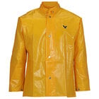 Experience heavy protection and lightweight comfort with the Tingley Iron Eagle gold jacket with inner cuff! This mildew-resistant coat is a necessity for working in environments like sanitation, meat packing, agriculture, and any other field where a light layer of protection goes a long way. Generously cut batwing sleeves offer maximum flexibility, and the 2 mm exterior offers ideal resistance to snags and abrasions. An elastic inner cuff and snap take-up on outer cuff add an extra layer of safety and resistance. The seals along the front and the attachable hood (sold separately) keep out winds, rain, and contaminants, and the heavy-duty snaps won't fail you as you move throughout the workday.