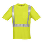 Designed for functionality, this safety shirt features short sleeves for breathability, making it suitable for use in warm weather environments. It is equipped with a pocket on the chest for essential tools and devices such as pens, flash lights, and cell phones. The fluorescent orange material provides excellent daytime visibility, while the 2" harness layout silver tape reflects light for 360-degree nighttime conspicuity. This shirt meets ANSI / ISEA 107 Type R, Class 2 standards for high visibility.