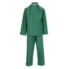 Protect yourself from the elements with this Tingley Storm-Champ green 2-piece rainsuit! Designed for comfort and ease of movement, this 2-piece rainsuit comes with a hooded jacket and pants. Both pieces are constructed of 0.20 mm PVC on nylon, offering superior protection against the elements, and they feature a green color. The electronically welded seams offer 100% waterproof protection, and the jacket features a snap-down storm flap that seals out wind and rain. The jacket also has a drawcord at the bottom to provide a better fit and help seal out the elements. All snaps are made of non-corrosive metal, ensuring longevity, and all drawcords have barrel locks. Perfect for staying dry in inclement weather, this rainsuit is ideal for use in agriculture, construction, utilities, and landscaping.