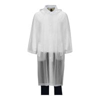 - Includes pants and a hooded jacket made of 0.25 mm double-ply PVC
