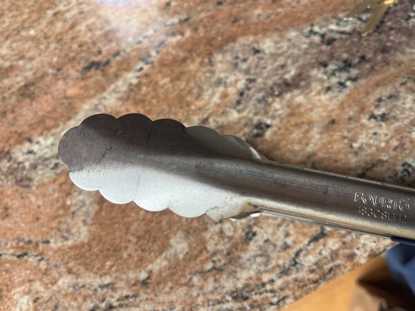 Can you be in awe of tongs? Yes, and you should be. This beautiful tool is made by Fourte in the USA, is a solid one-piece stainless steel construction, and has a very comfortable, grippy handle; if you have any issues with textures, these will be perfect for you; they're smooth, soft, and comfortable to hold. My kitchen never seems to have enough clean tongs available, and I learned first hand why you shouldn't try to pluck hot pizza out of a cast iron pan. I would buy more of these in a heartbeat.
