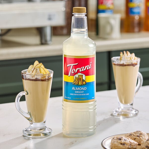 Bring all new flavors to your specialty drink menu with this Torani almond (orgeat) flavoring syrup! This tempting flavor will complement your beverages without overpowering them or being too sweet, while the user-friendly bottle will be convenient for your busy baristas to use. The syrup is packaged in a convenient plastic bottle which prevents broken glass in the prep area, and it can easily be paired with a compatible pump (sold separately) for quick, efficient service during peak serving hours. This dairy-friendly Torani flavoring syrup is specially formulated to resist curdling in milk and to hold up well under heat, making it the perfect choice for espresso-based drinks, brewed coffee, or tea.