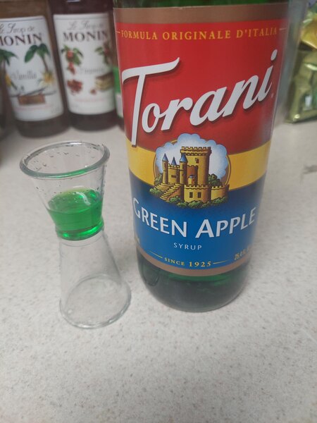 This Green Apple from Torani is amazing! We make a beautiful Italian soda with it and also an energy drink variation of an Italian soda with it. It is one of our customer favorites