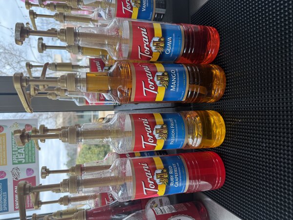 This fruit syrup may cause dairy products to curdle. To avoid curdling in coffee-based beverages, try mixing the coffee and Torani syrup together first before adding the milk. The coffee helps to dilute the acidity of the syrup so that the dairy products will remain creamy. To avoid curdling in crafted sodas, begin by mixing water and syrup together first, then topping with your dairy products.