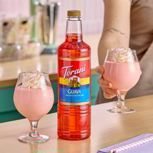 Bring all new flavors to your specialty drink menu with this Torani guava flavoring syrup! This tempting flavor will complement your beverages without overpowering them or being too sweet, while the user-friendly bottle will be convenient for your busy baristas to use. The syrup is packaged in a convenient plastic bottle which prevents broken glass in the prep area, and it can easily be paired with a compatible pump (sold separately) for quick, efficient service during peak serving hours. Use this flavor for frappes, iced coffees, smoothies, and even baking!
