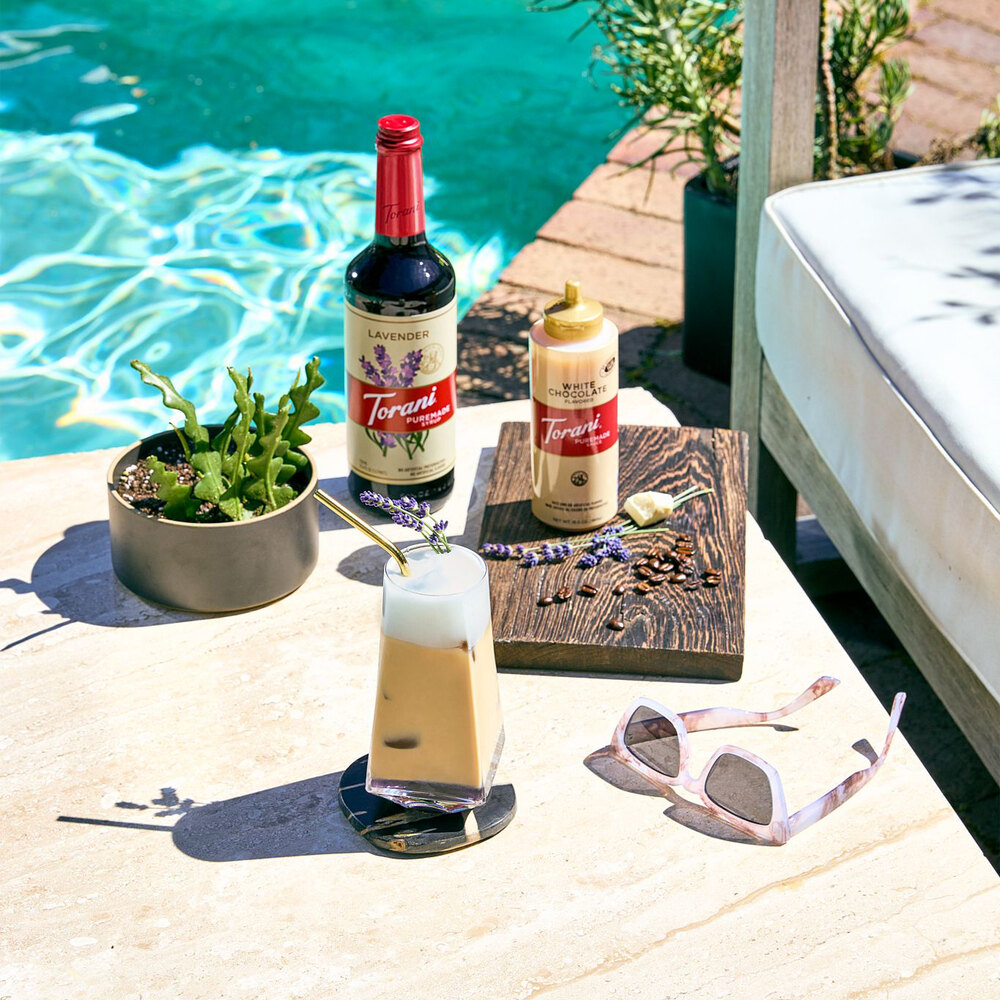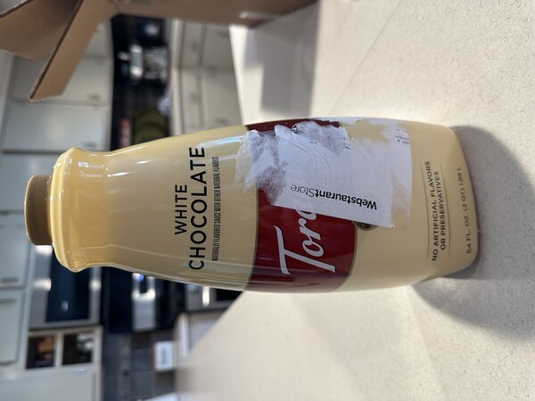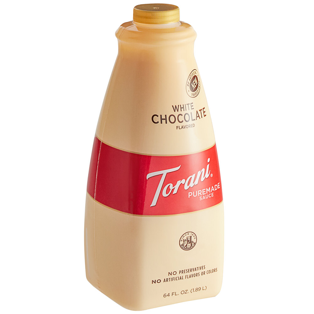 Perfect white chocolate sauce by Torani. It melts beautifully in hot drinks and it's a customer favorite.