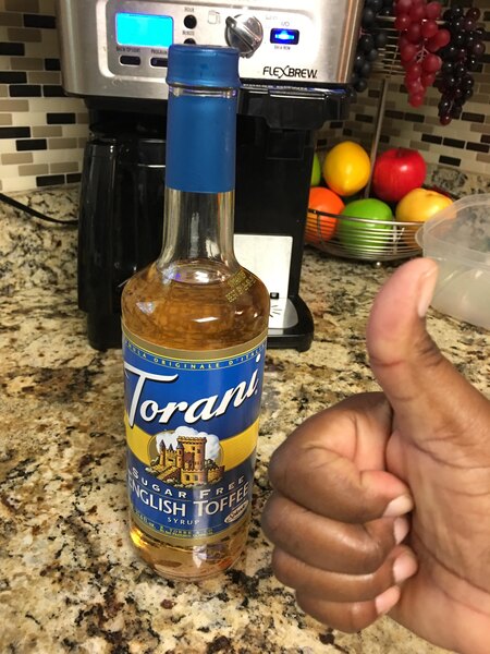 English toffee syrup is so good! I'm glad that Torani makes it available in the sugar free version as well as the regular kind. It's like caramel, but better!