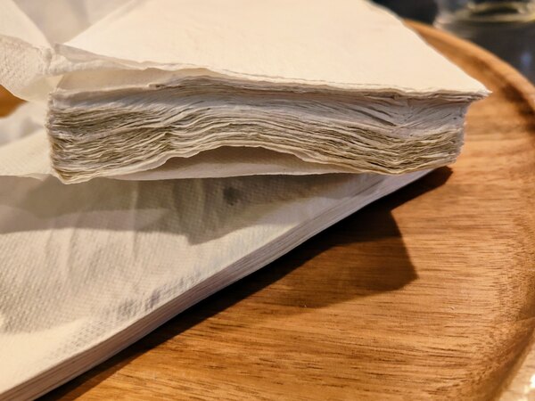 My napkins have been wet before and are no good to me. Bad quality. You should not send out damaged product. I have finally reached my limit of damaged products. I'll shop local for now on.