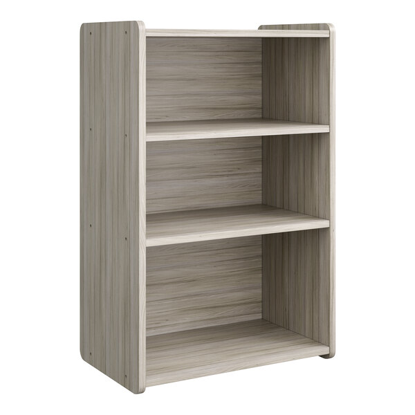 Give toddlers a place to play and explore their creativity with the Tot Mate TMS401R.S3322 shadow elm laminate school age storage shelf. This storage shelf is constructed of durable laminate with recycled/reclaimed core materials and an attractive shadow elm finish. This shelf has three levels separated by two full width fixed shelves. It is perfect for storing toys, games, and learning materials organized and out of the way. For even more efficient storage you can pair the shelf with Tot Mate's translucent storage bins (sold separately). The laminate surface is easy to wipe down to keep clean and properly sanitized. This item comes unassembled.