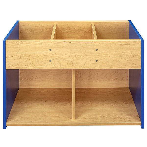 Provide teachers a space to store books, toys, and other classroom materials with the Tot Mate TMS501R.S3322 shadow elm laminate book / toy storage. This storage unit is constructed of durable laminate with recycled/reclaimed core materials and an attractive shadow elm finish. A top-accessible storage area is divided into three sections for better organization. This storage area has 7" deep wells to store larger books and toys. The laminate surface is easy to wipe down to keep clean and properly sanitized. This item comes unassembled.