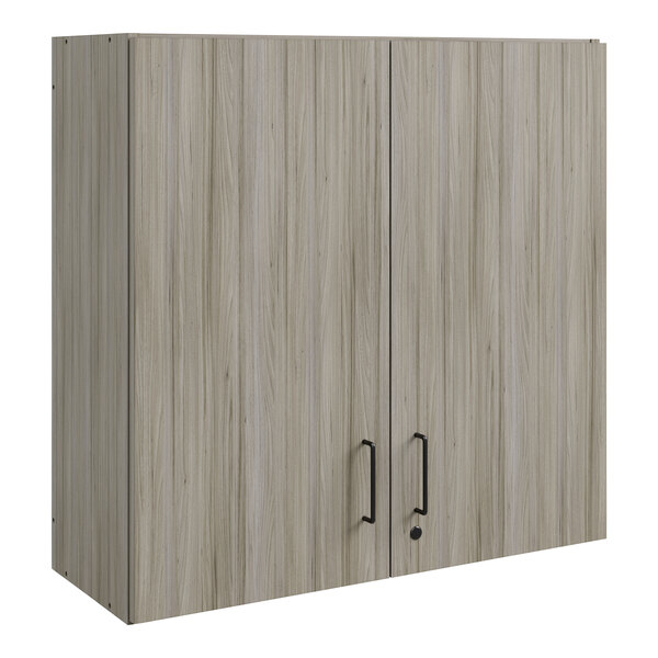 Provide teachers a space to store classroom supplies or their own personal items with the Tot Mate TMW301A.S3322 shadow elm 4-compartment wall laminate cabinet. This cabinet is constructed of durable laminate with recycled/reclaimed core materials and an attractive shadow elm finish. It includes 2 half-width adjustable shelves and a center divider for flexible and efficient storage. The doors can also be locked to safely secure valuables and prevent unwanted intrusion. The laminate surface is easy to wipe down to keep clean and properly sanitized. This item comes fully assembled.