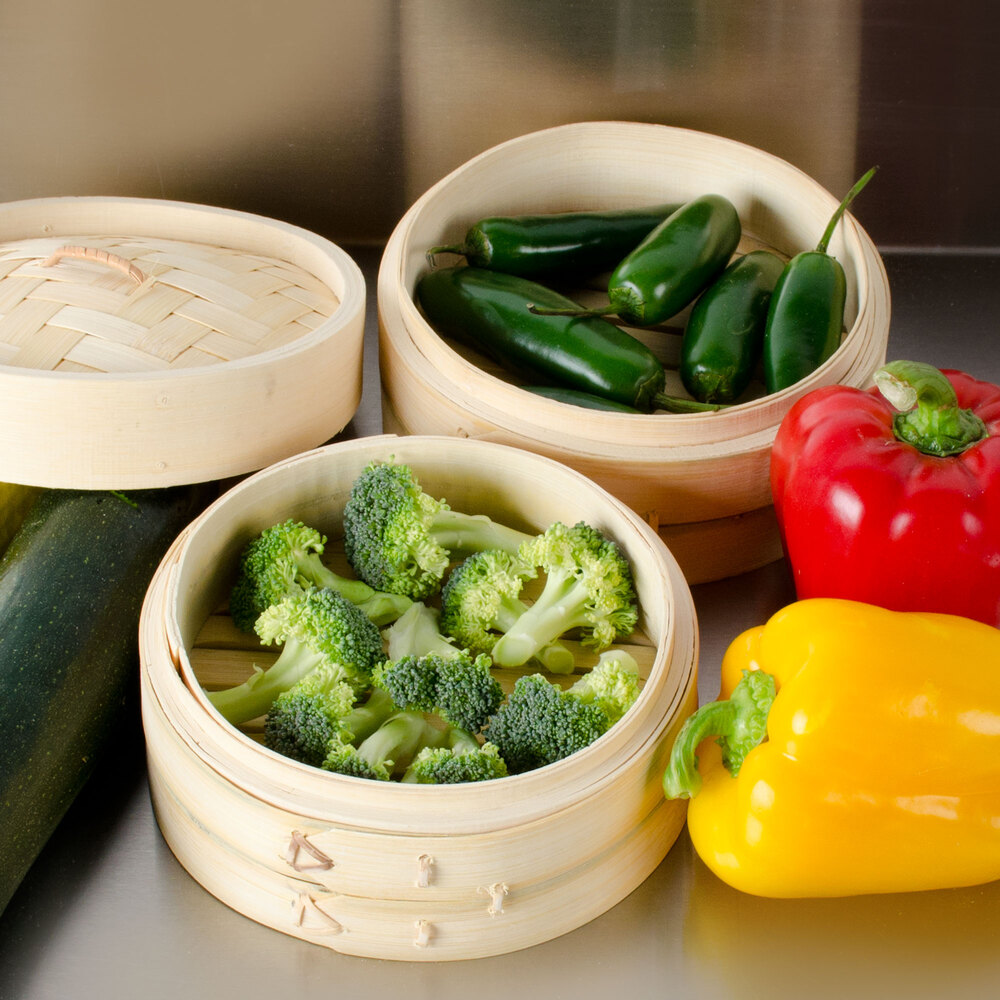 Steaming is the healthiest ways to cook, fastest and easiest too. These bamboo steamers are great to have when you need a vegetable cooked fast on the spot.