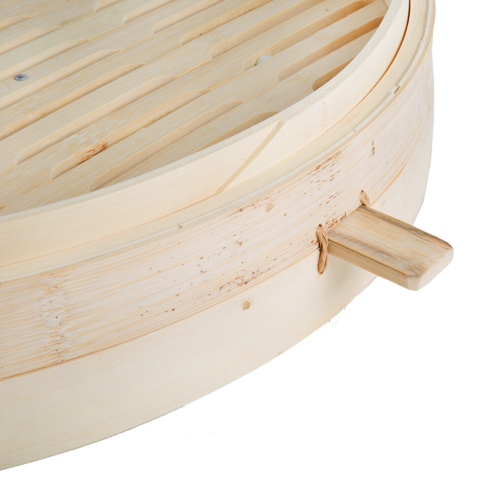 Originating in China and still a staple in Asian cooking today, this bamboo steamer is an extremely useful and versatile kitchen tool for cooking healthier meals, faster. With its 20" diameter, this steamer set is perfect for cooking meat, fish, vegetables, rice, or dim sum to perfection.