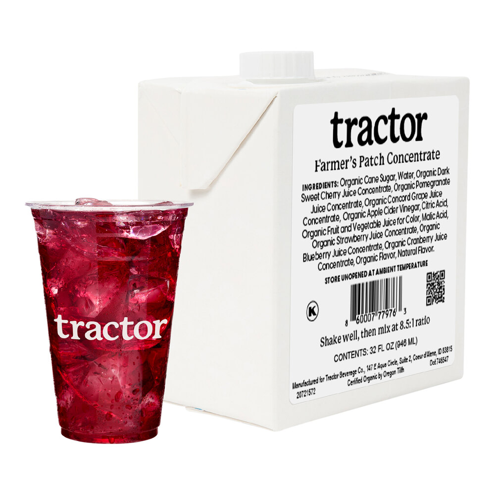 This organic concentrate features a bold strawberry, blueberry, cranberry, and grape flavor with notes of pomegranate and pure cane sugar. It's an essential drink to satisfy your guests' cravings. Not only is this Tractor Beverage Co. farmer's punch beverage concentrate delicious and easy to prepare, but it also comes in convenient packaging for versatile use in various establishments.